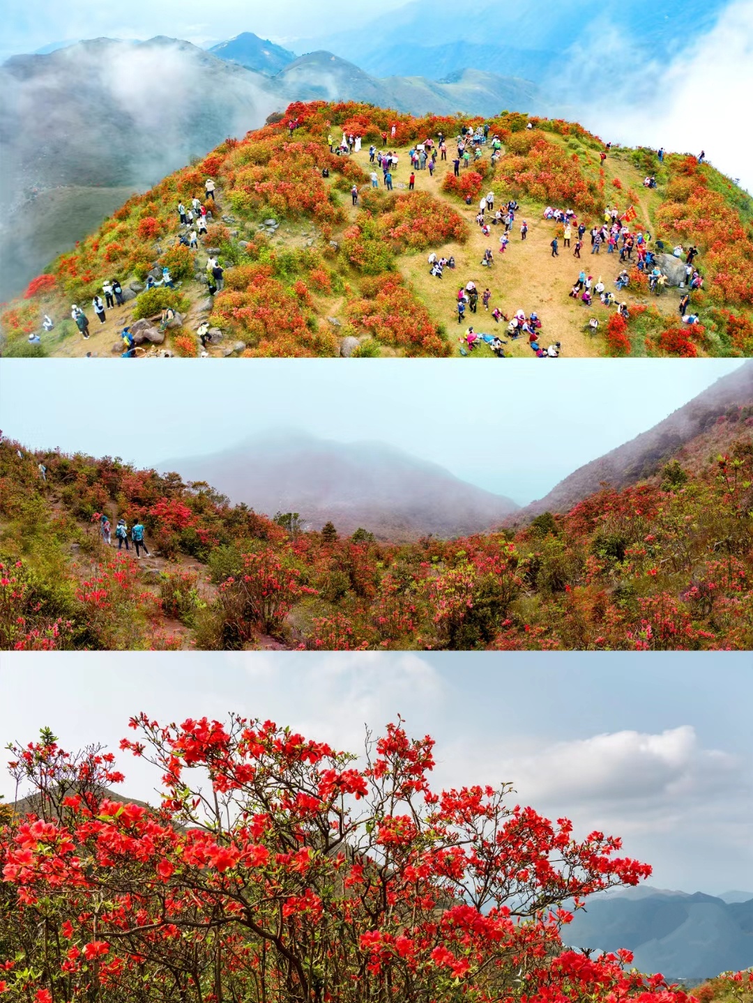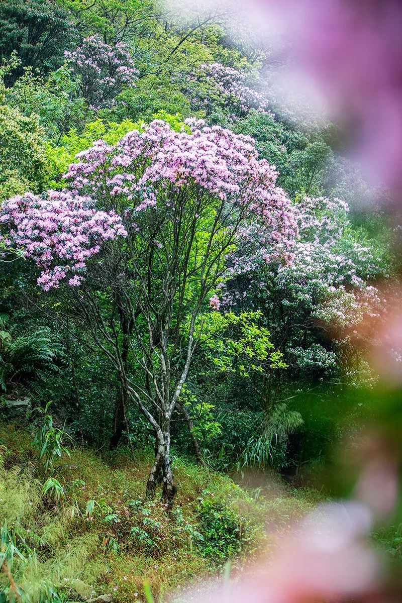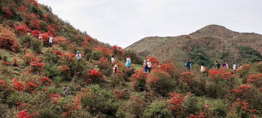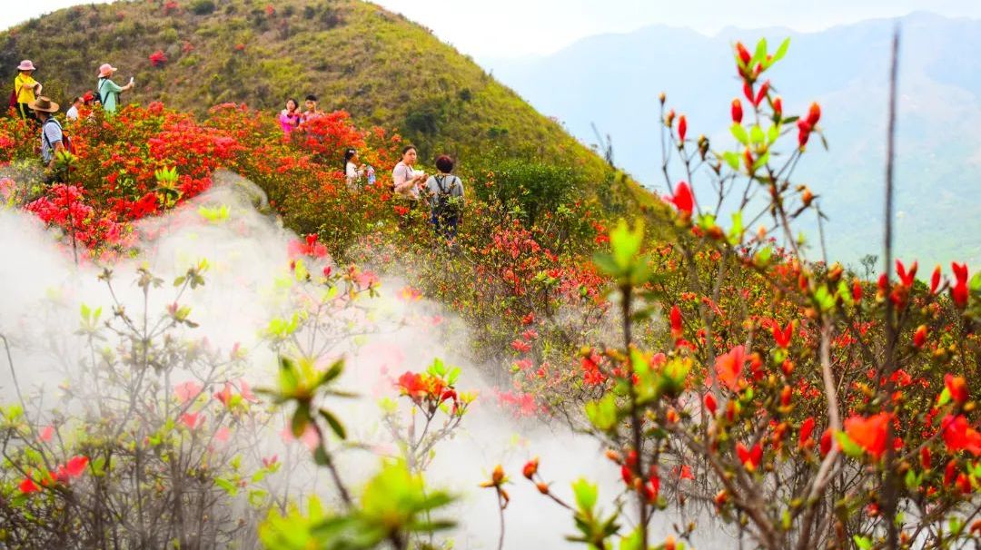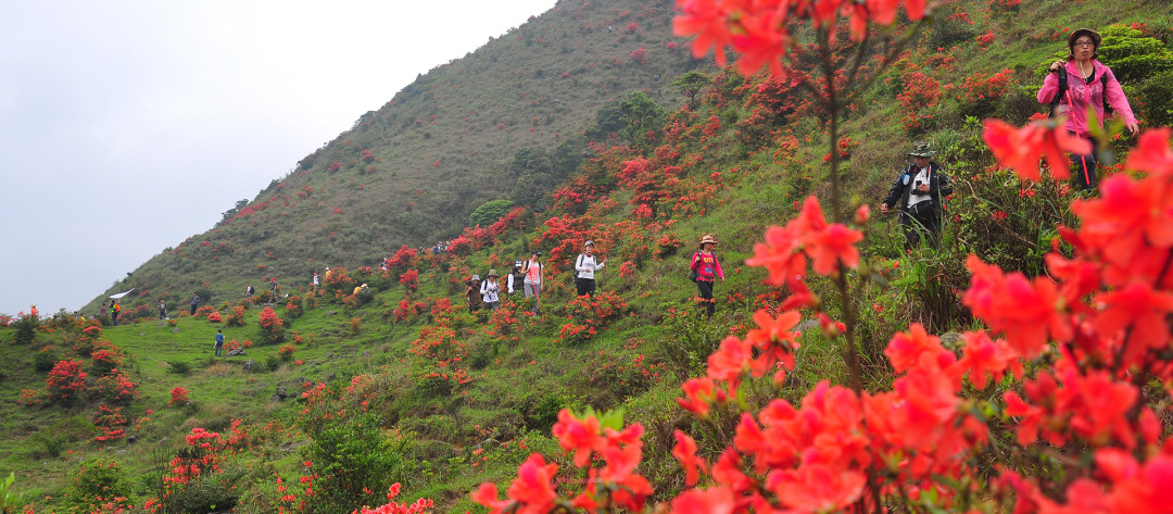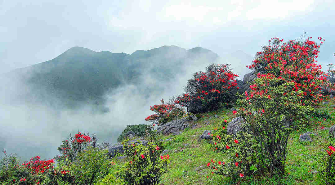 亮点1:赏千亩高山杜鹃花海@广东省内规模最大,最美、最罕有的原始野生乔木高山杜鹃,须生长在海拔900米以上方会盛开,4月最佳观赏期,漫山遍野映山红!