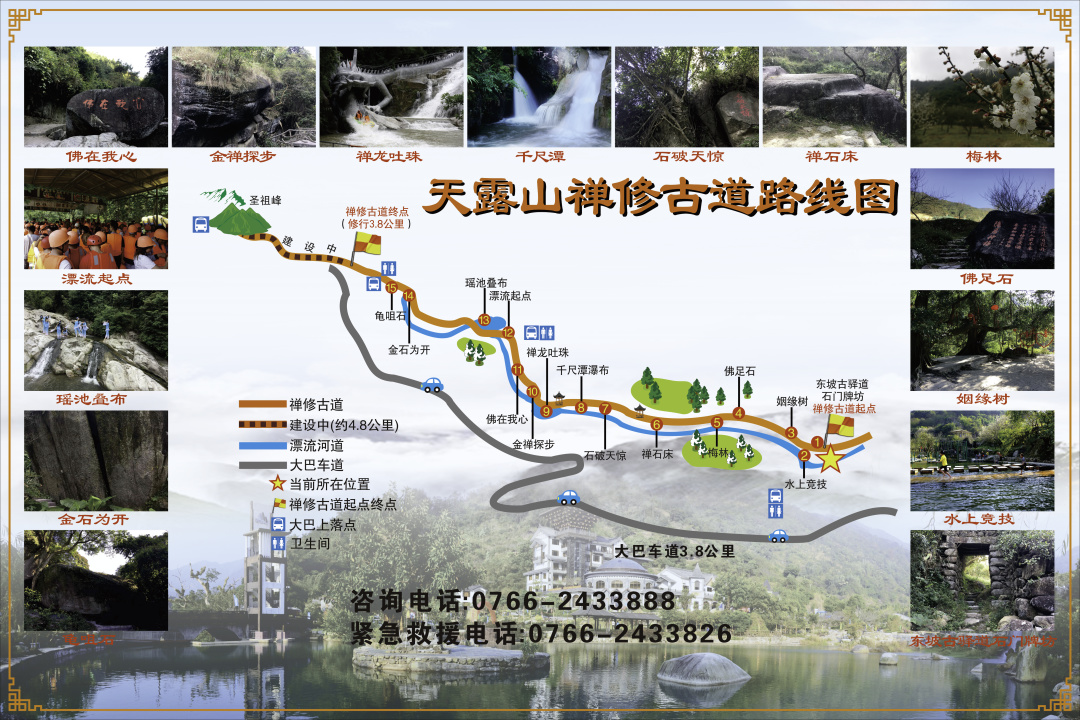 亮点3: 畅游国家AAAA级旅游景区@广东天露山旅游度假区,禅修古道、禅龙峡、无忧谷原始森林探险栈道、禅坛观光塔、佛手拈花、梅溪古镇特产街、南药科普种植基地、七彩梯田花谷、六里野牡丹大道、天露山羊场、风车路、千亩高山草原等等特色景点等一次打卡!