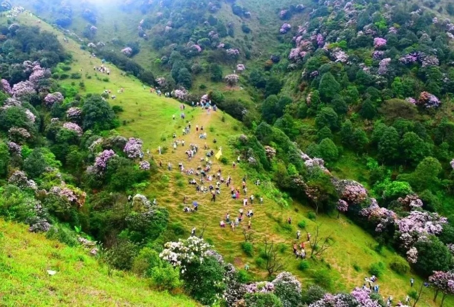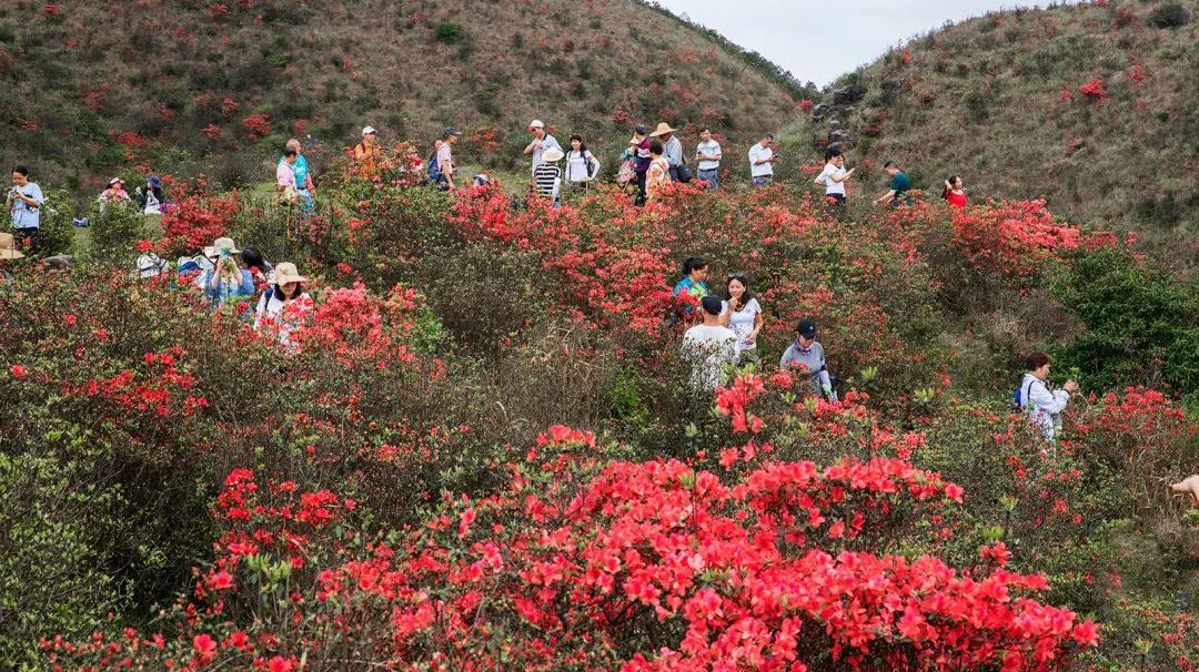 踱步山野,千亩绚丽的杜鹃花海肆意绽放,