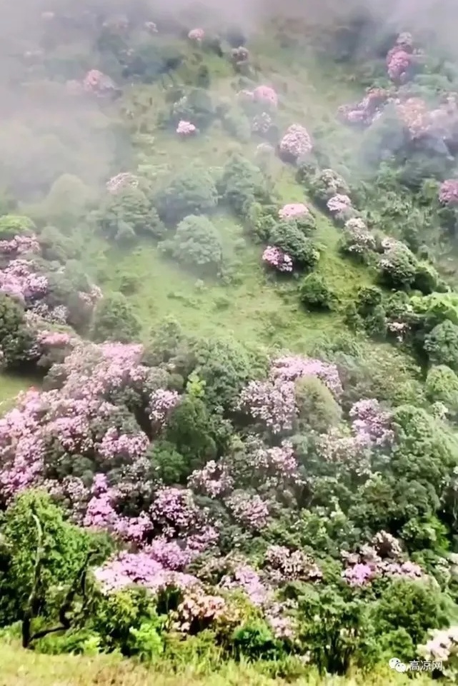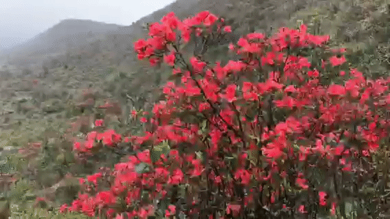 远观杜鹃花在云雾中若隐若现如梦似幻!