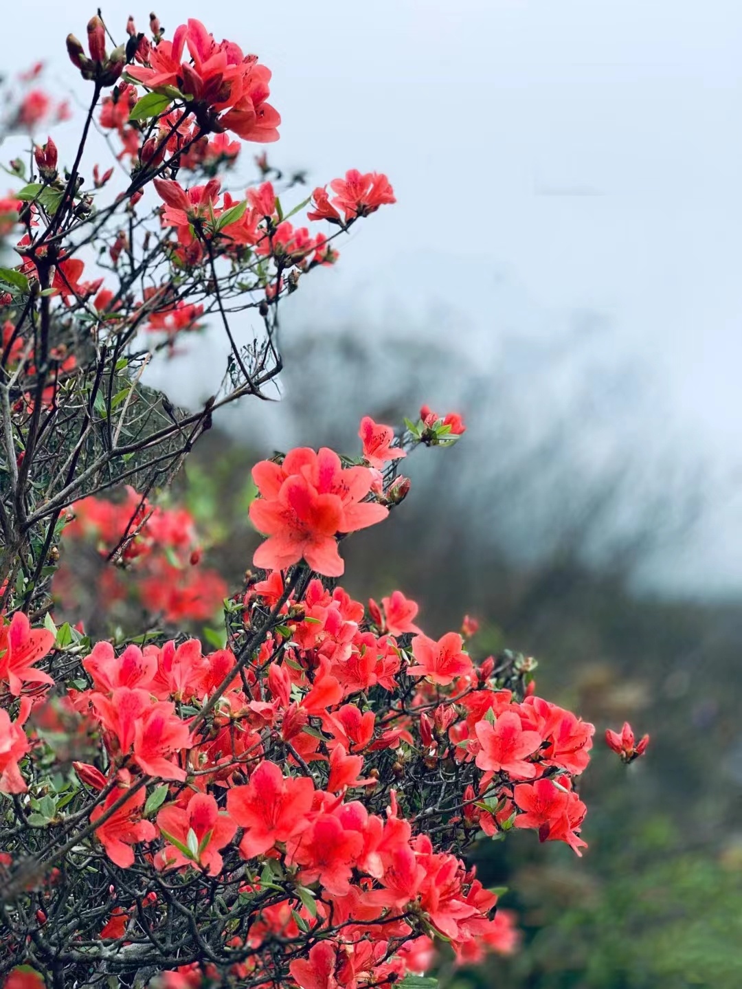在云雾中赏杜鹃花,更是另一种心境