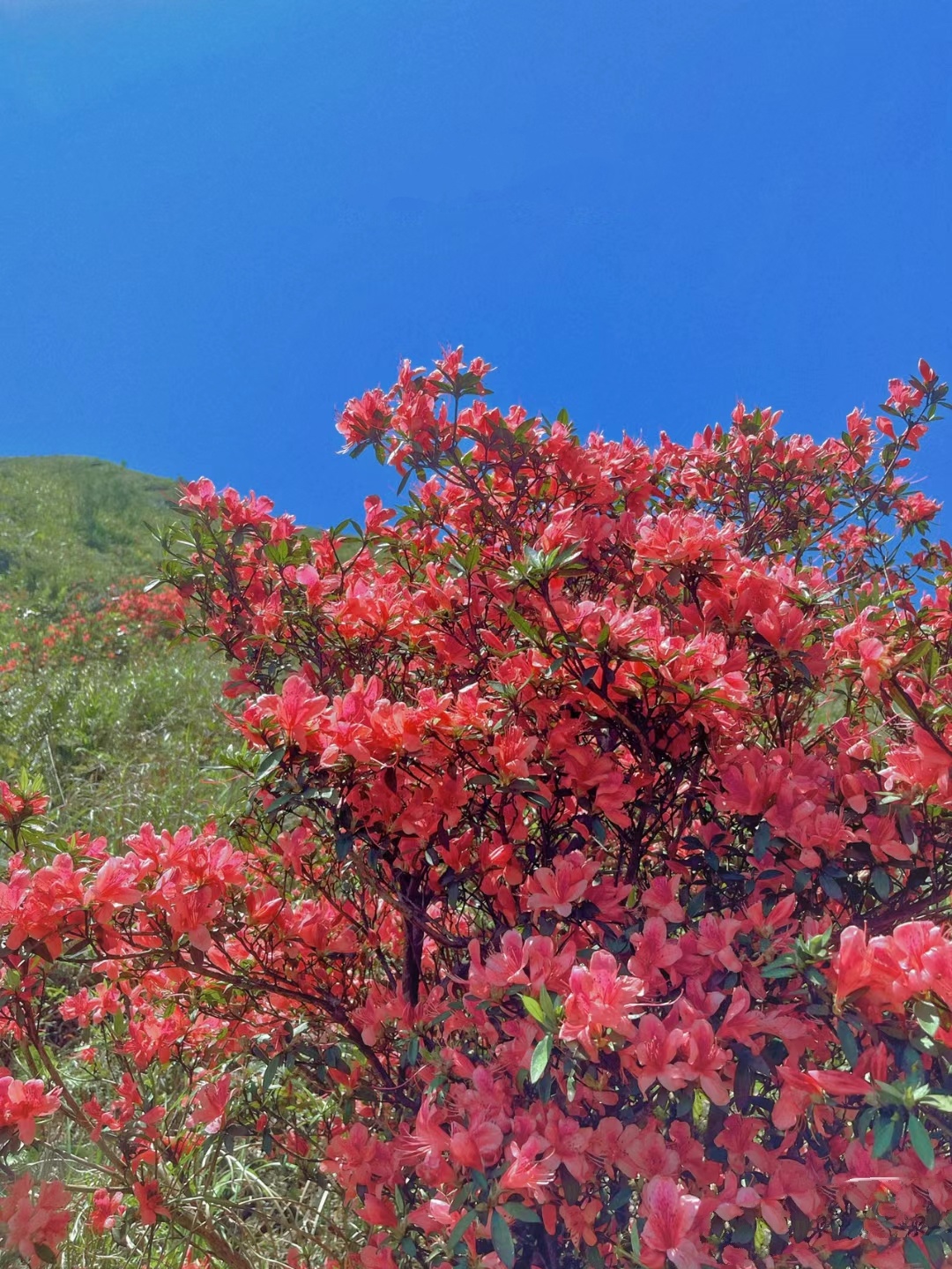 9:30 到达山顶,看满山映山红,自由拍照打卡,然后拍大合影了,领队带上专业相机给各位拍美照了