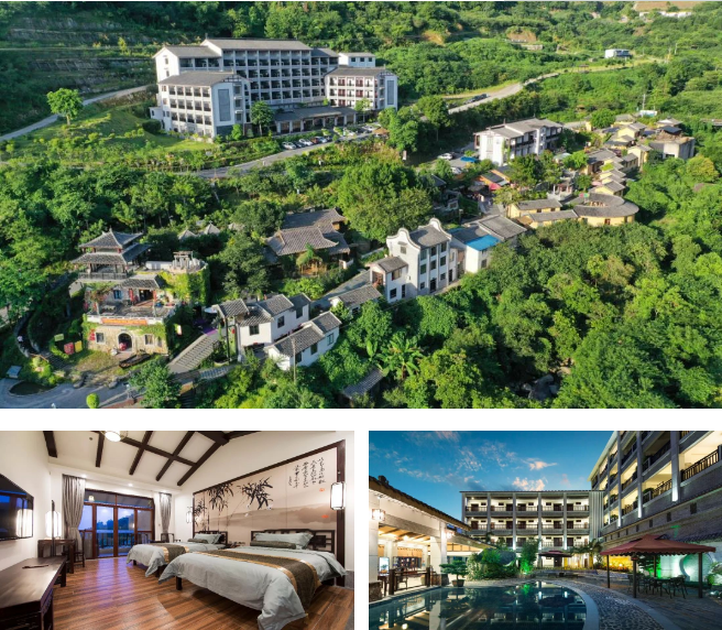 住宿:无忧谷酒店(88间)、菩提精舍(民宿16间)、湖景酒店(13间)、半山泡池木屋(18间)、半山观景木屋(13间)、童话木屋(13间)、异国亲子木屋(11间)、梅林帐篷(13间);