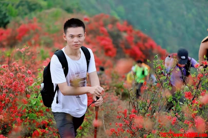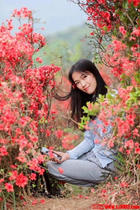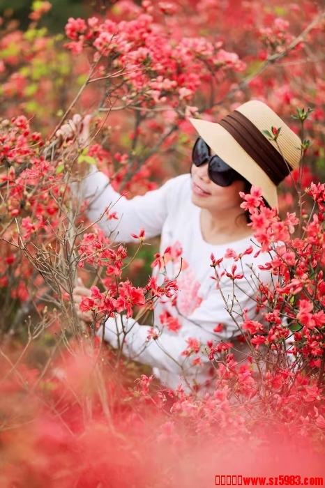 领队拍摄的杜鹃花人像相片: