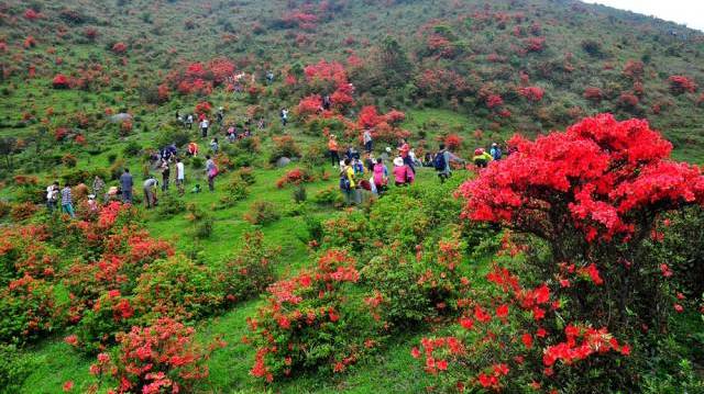 每年4月漫山遍野开满红杜鹃,吸引各地驴友蜂拥而至,一睹映山红杜鹃花的风采。