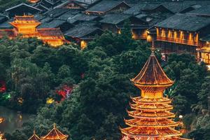 义团鼓楼:十一重檐八角攒尖顶,高25.8米,占地面积81.6平方米。