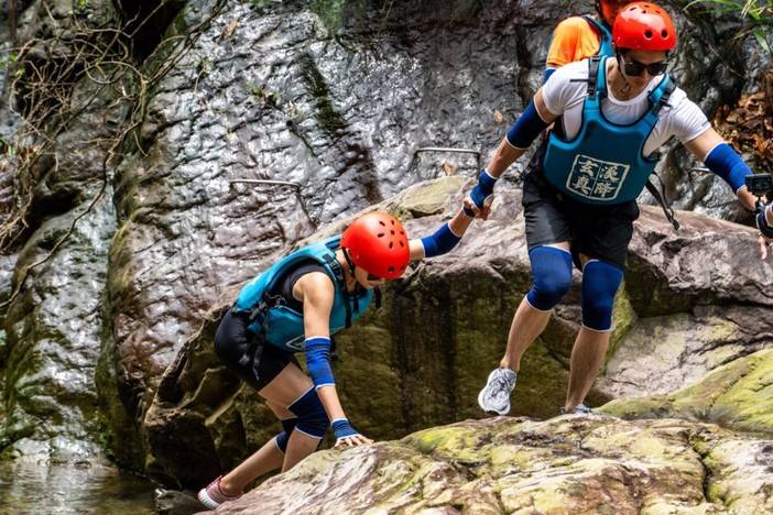 溪降畅玩线(特别赠送登峰悬空魔毯),溪降之王位于玄真漂流赛道上游的玄真大峡谷中,溪降路线环绕海拔超600米高山中的深邃溪谷,挑战全3850米,总落差465米的专业路线,全程6个水滑梯、5个可降瀑布、5个跳潭(1个必跳)。在这里你可以探索河流、峡谷和其他通常被认为无法进入的自然区域,在山风和水珠的拍打中,顺着湍急的溪水一头“滑”进清澈的深潭,疾驰而下感受山谷里清爽!从两米左右的崖口,一跃而下,在清澈的翠绿深潭水激起一片劲浪,感受心跳加速的快感!在清溪里游泳,游过清澈见底的山泉水,让清凉浸透全身!在这里,你可以享受到充满动感的溪降之旅,感受大自然带来的最凉爽体验!(参加溪降畅玩线送登峰悬空魔毯、玄真大峡谷)
