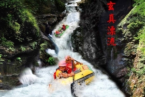 玄真漂流素有华南第一漂、南粤至激漂之称,被誉为是中国漂流行业的经典之作,更有【玄真漂流,漂动天下】之美誉。素以“水清、浪激、石奇、山险、林密”五大奇景闻名于世,十五平方公里的集雨山林,至清至纯至激至狂的河水穿岩凿壁、傲视群雄;268米不规则分布落差将猛、激、奇、急、险多种漂流特色一一呈现:群山环抱、碧潭密布、奇石怪藤尤如星罗,山岩巨石穿插不断,霸气尽显!4.3公里极品原生态漂流河道,128处激流落差让游客在浪尖上尽情飞舞90分钟,236处各式弯道演绎“水上达喀尔”极速漂移感觉;升级整合的准90度角极速 “玄龙出洞”回旋落差尽显王者风范,更因为所得天独厚的自然山水资源,被指定为国家自然水域漂流大赛主赛场。
