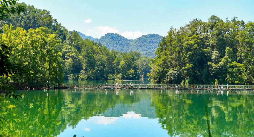 🌲 古木奇境:66亩半岛上,百年古树与吊脚楼群相映成趣