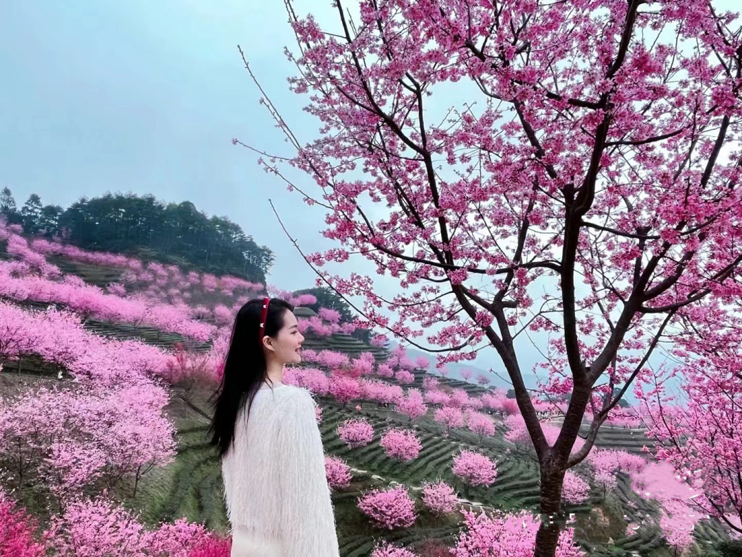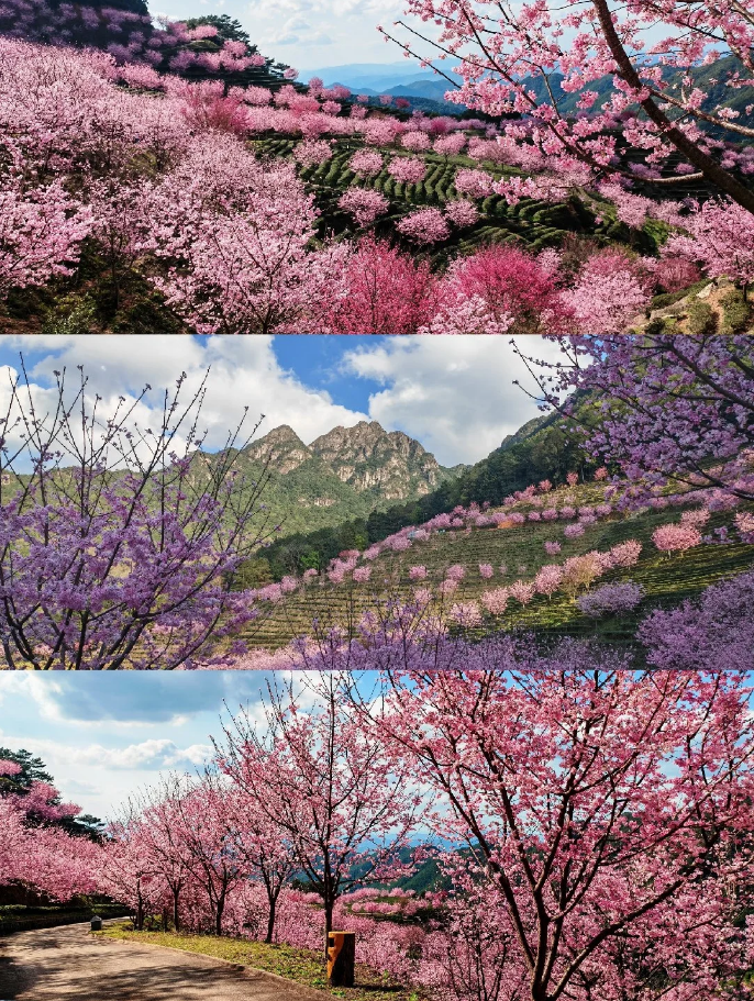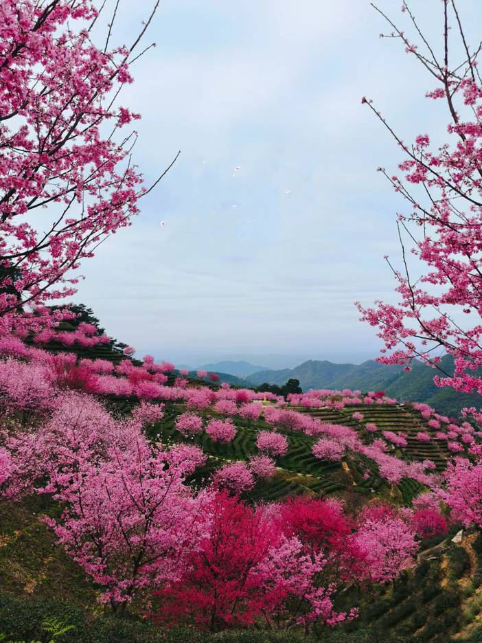 梅州阴那山樱花---广东最美的茶园樱花,千亩茶园,万株樱花,层层叠叠,山野间的绿色茶丛之间,玫红与浅粉的樱花交相辉映,美不胜收!