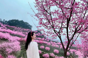 09:00左右阴那山樱花园赏樱花,主要有红粉佳人、本地山樱、牡丹樱、香水樱等品种。