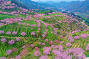 千亩茶园,万株樱花,迎春暂放,漫山遍野的粉色花朵,点缀在四季常青的茶园内,层层叠叠,烂漫无比,深深吸上一口充满花香与茶香的空气,沁人心脾...