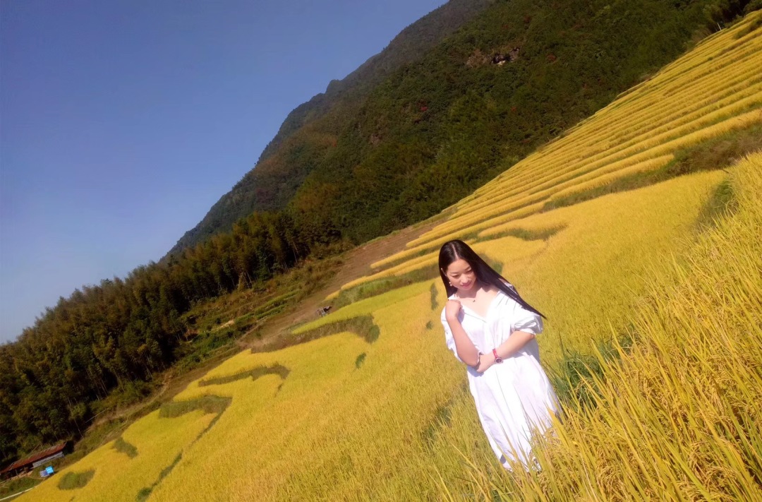 09:30到达梯田,结伴玩耍,大伙可以帮忙多拍点照片,体验农家的生活。阳光打在接近收割的梯田上,放眼望去一片金色非常震撼;