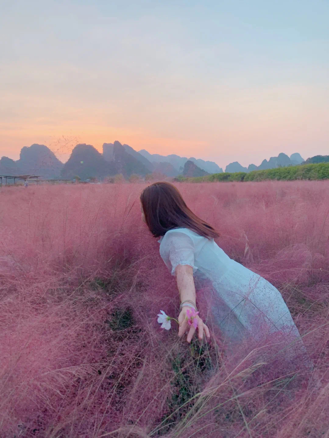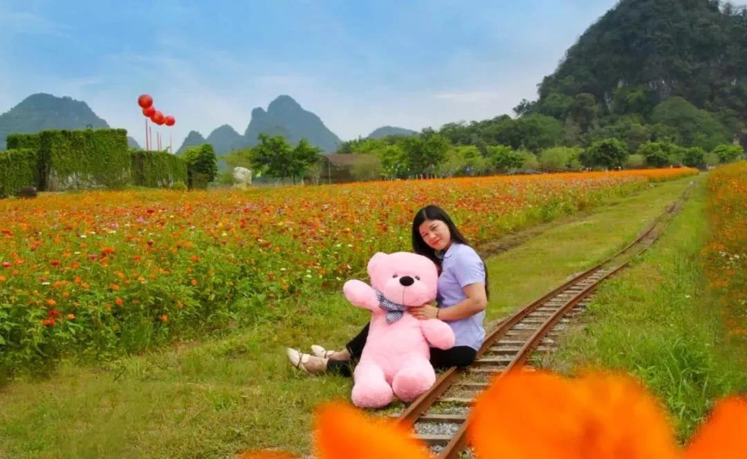 12: 30左右来到峰林小镇,开启狂拍模式,美丽的峰林倒影,浪漫的粉黛乱子草、狗尾巴草,热情的波斯菊....哎呀,各种pose摆起来,美照刷爆朋友圈、抖音时刻上头条...