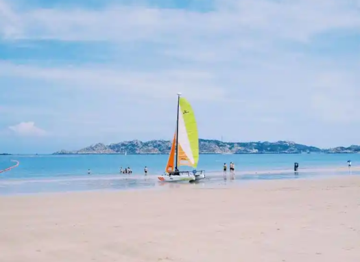 午餐后游览国家 4A 级景区【马銮湾风景区】位于中国十大美丽海岛之一的东山岛东部,是国家 AAAA 级景区,规划面积约 1500 亩。景区内拥有中国帆船帆板训练基地马銮湾海滨浴场,以及财政培训中心、金沙大酒店等酒店。 马銮湾,素有“东方夏威夷”的美称,这里沙滩坡度平缓,沙质洁白细软,林带青翠葱茏,海面宽阔洁净,水清澈无暗礁,是一处绝佳的海滨游览胜地。