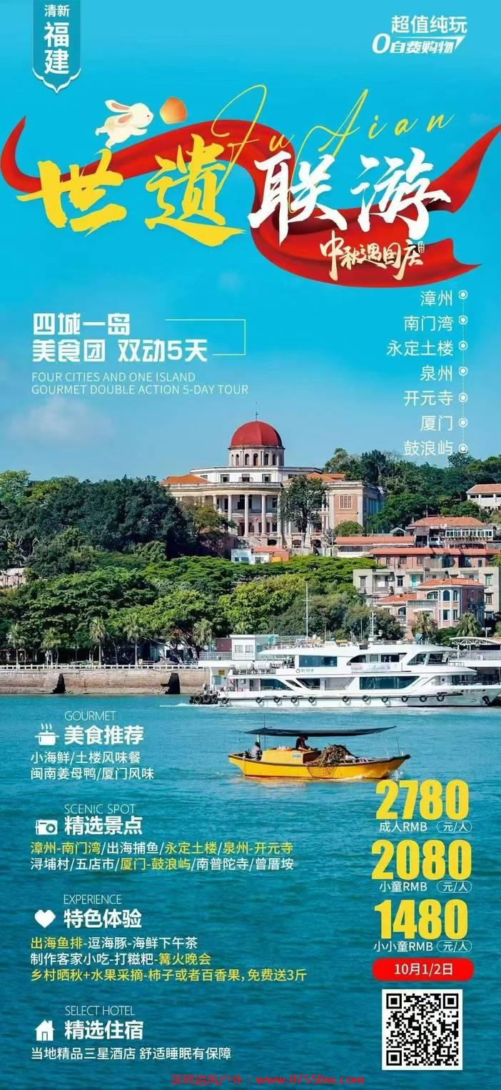 福州平潭岛·世遗产泉州·漳州云水谣·东山岛·双动五天