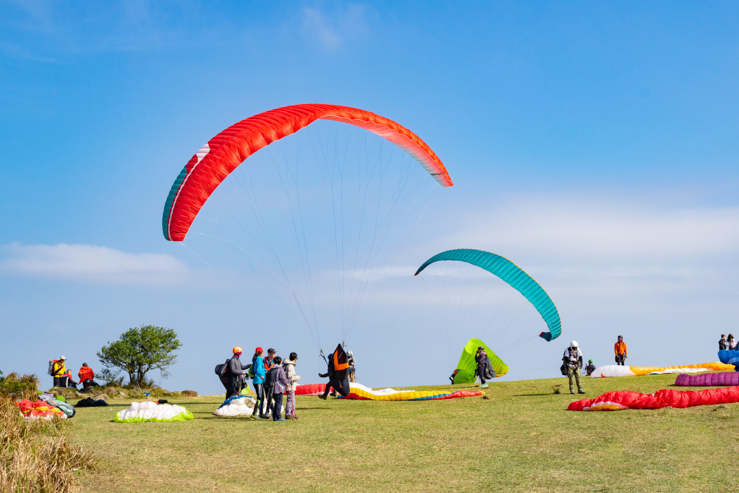 山顶有处平原,就是昂平,是个高山营地。每逢假日,许多滑翔伞爱好者在此翱翔天际。
