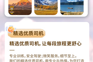 5.该线路部分目的地海拔较高,有严重高血压、心脏病等疾病的客人及老年客人,请根据自身条件,遵医嘱,谨慎决定是否出行。