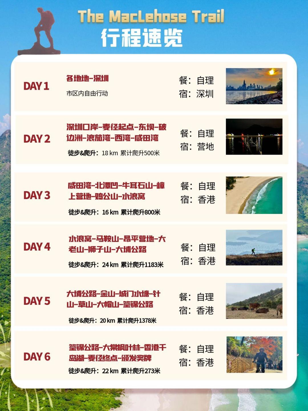 7:30 全员出发前往口岸过关,过关乘车到麦理浩径起点