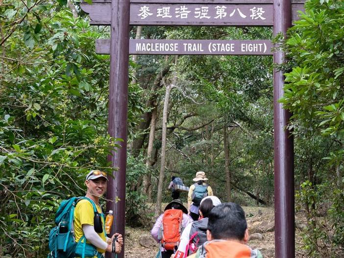 08:30 领队带领热身后开始徒步,今天挑战6、7、8段,也是香港的一条越野跑拉练线路之一的“针草帽”,也是较为辛苦