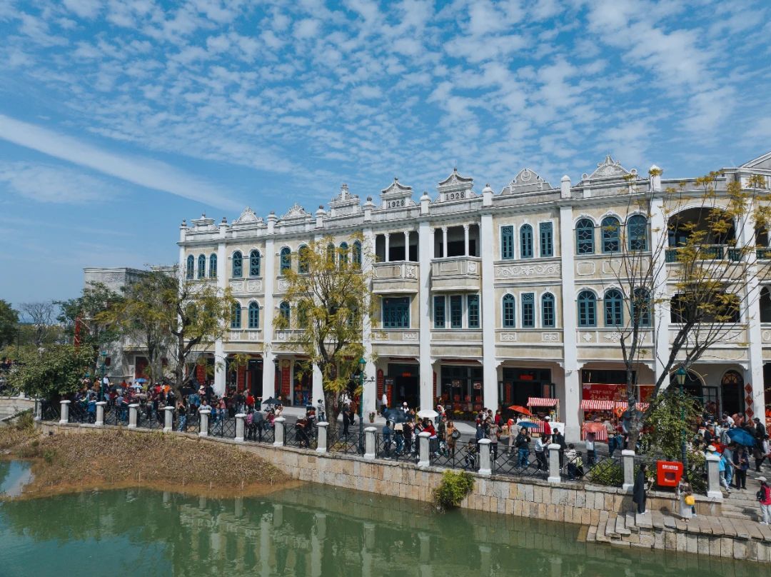 “ 三百年开埠建墟,两家族竞耀争辉,一侨领彪炳史册”,一景一物皆书写着繁华历史,一河两岸独特的中西合璧风格,灯火辉煌的夜景,演绎着一步现实版“金墟”的烟火人间