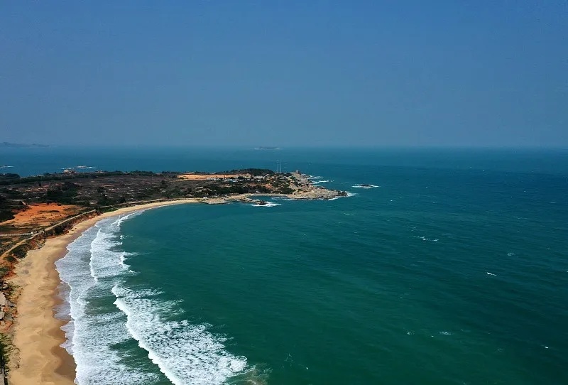 东西两侧形似月牙的海湾,长年一边波涛汹涌,一边风平浪静,此起彼伏,蔚为奇观,可谓“中国观浪第一湾”。其沙滩金黄细腻,海水蔚蓝透明,礁岩千姿百态,阳光、蓝天、白云相得益彰,帆影、翔鸥、彩霞交相辉映,极富魅力。