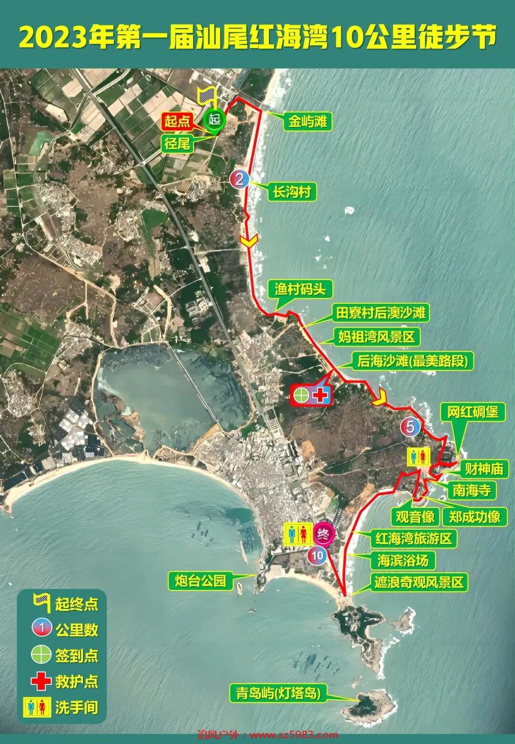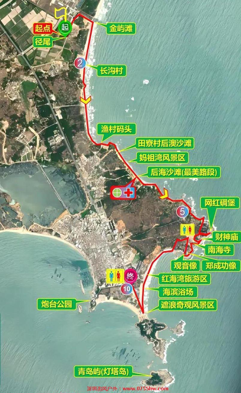 路况参数:全程约10公里,由原生态海边山道、沙滩、泥土道、水泥路、湖边绿道等组成,途中设一个签到点,累计爬升20米,预计用时3小时左右;