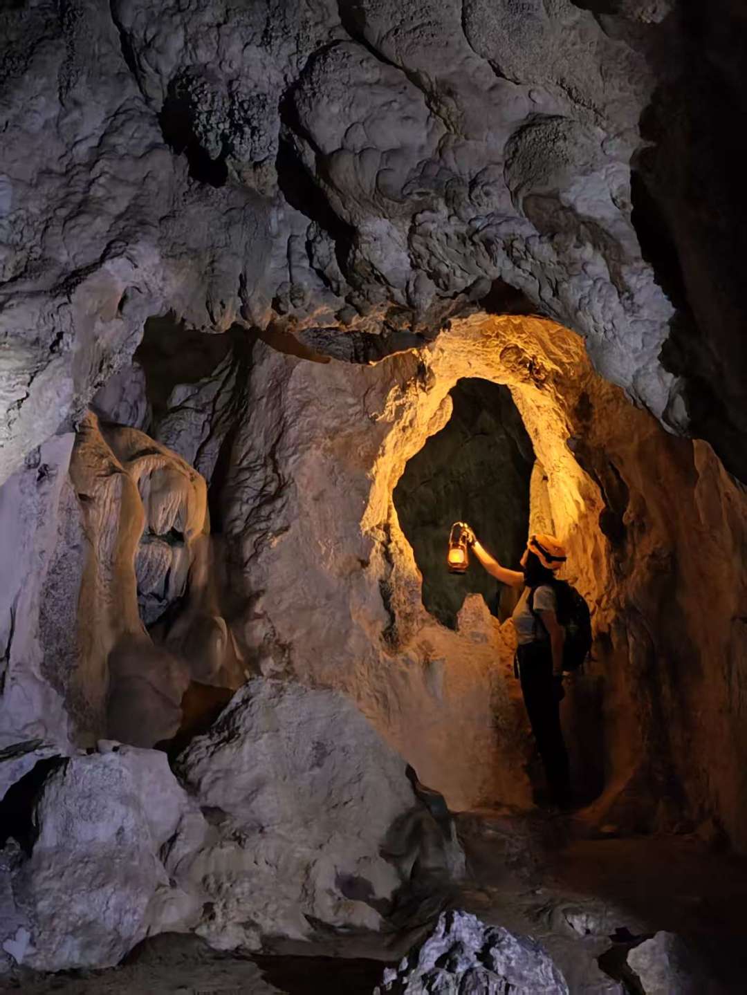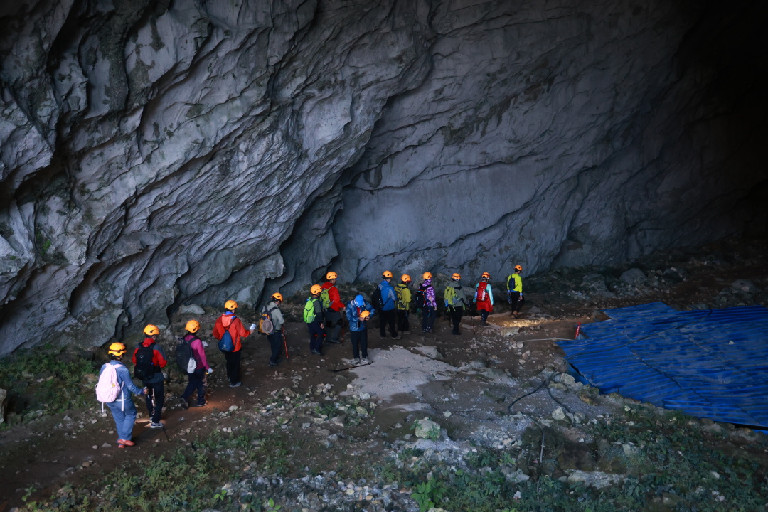 10:40徒步地心之旅。5小时的徒步穿越,线路很成熟,地心之旅徒步大会精华段就这里。这个季节,最合适早起登山,先进行一小段的登山,今天的午餐是路餐,只能是在洞里吃,带上温水,还有干粮,一起探索神奇的天坑溶洞世界吧