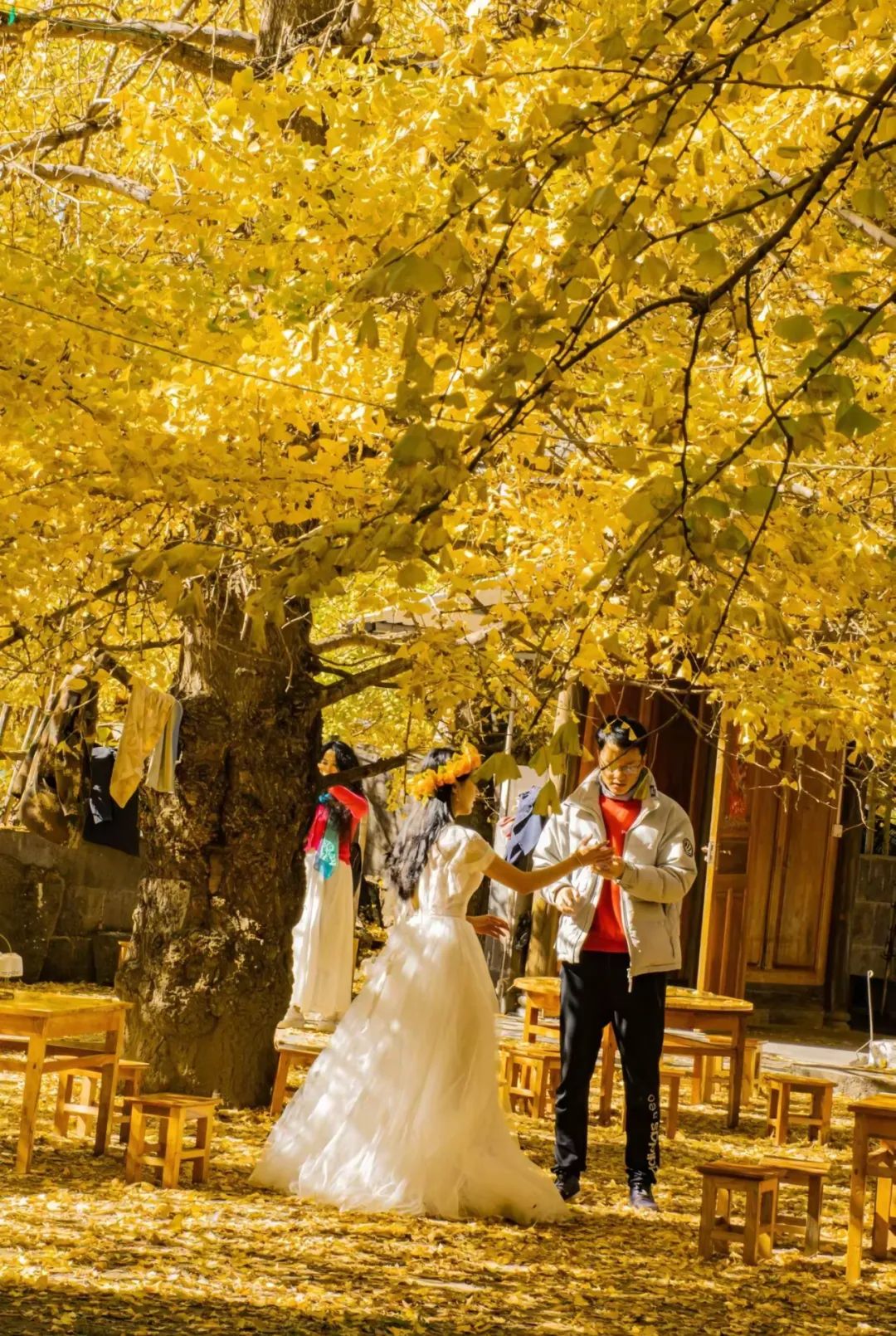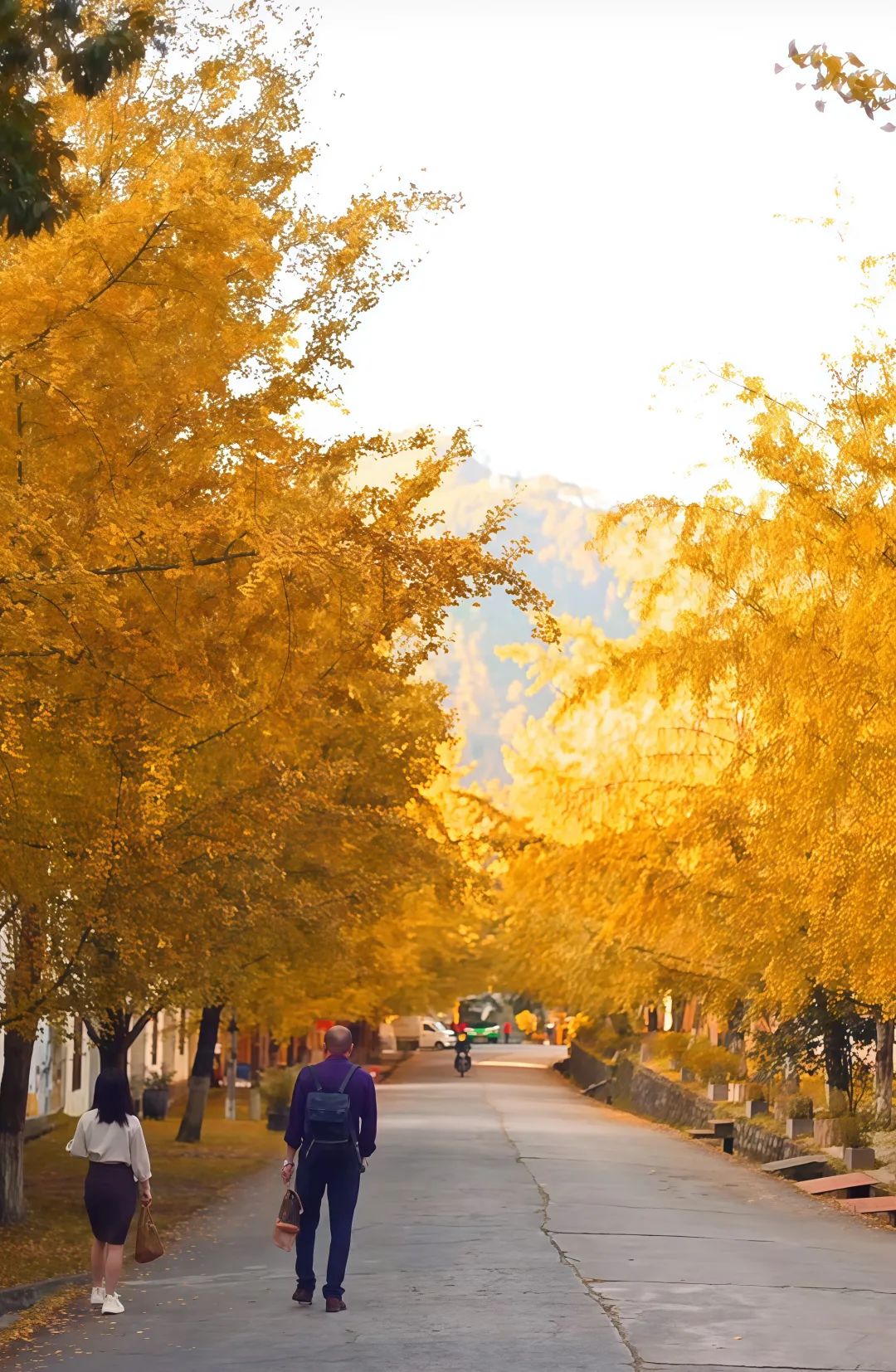 芳坑的黄金大道是最佳拍照点之一,笔直的银杏,金黄的树叶,飘散着独具生态特色的银杏气韵。