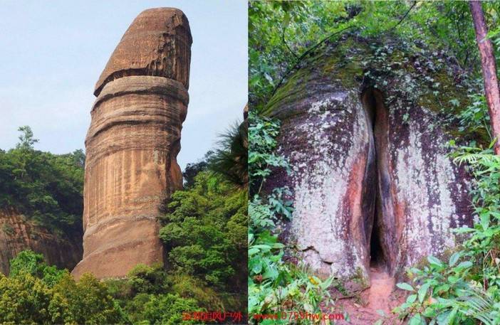 尤其令人称奇的是,同在丹霞山,还有一个少阴石(阴元石),与女性外生殖器酷似,阳元石与处女渊同处丹霞山,这正是大自然神奇之处,经过国家地质学专家鉴定,二者均为天然之作。