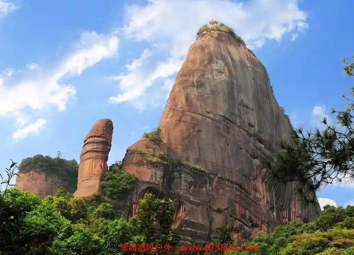 阳元石与阴元石隔山隔江相望,直线距离不到5公里,是大自然恩锡给丹霞山的瑰宝。