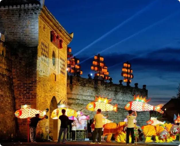 定南客家古城--大鱼海棠照进现实,必打卡活动百米鱼灯长龙 🐉 非遗匠人手工扎制的10盏大鱼灯,及游客朋友DIY的小鱼灯,夜幕下如星河游动!民俗快闪 💃 巡游途中随机触发!《鲤鱼灯舞》+《采茶戏》片段,演员会拉路人一起参与举灯表演,超有参与感~也是《开始推理吧3》在拍摄地哦