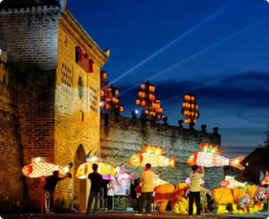 第一天:深圳--龙南燕翼围--定南客家古城鱼灯巡游--酒店