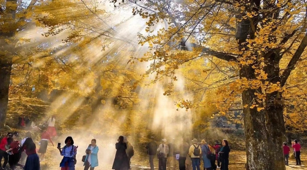 桐子坳景区旅游资源极为丰富,尤以银杏著称,素有“中国银杏第一村”的美称。它不像春日的妩媚,也不像夏日的狂野。桐子坳的秋天以它特有的美,令人流连,令人动容。置身于金色的大地中,看落叶纷纷,层林尽染,美哉!妙哉!