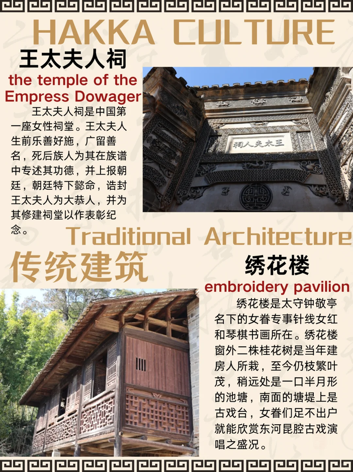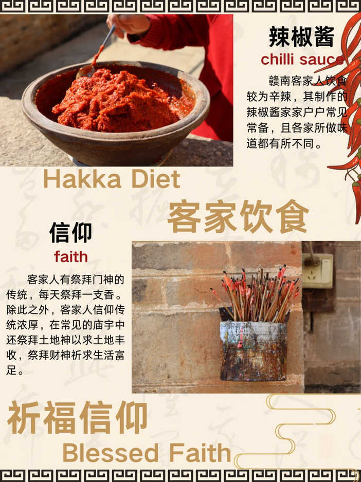 【客家风情街】是赣县客家文化城内的客家文化街,是江西省首家全方位展示客家文化的专题博物院的一部分。街道建筑采用典型的客家传统风格,如围龙屋、客家围屋等元素,充满浓郁的客家风情古色古香。这里集中展示了客家民俗文化、历史文化、饮食文化等。有各类客家文化展馆,陈列着客家先民的生产生活用具、传统手工艺品等,还有艺术长廊,展示客家诗词、绘画、雕刻等艺术作品。会举办各种客家文化主题活动,如客家民俗表演、传统手工艺制作体验、客家美食节等,让游客深入体验客家文化的独特魅力