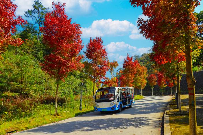 13:30左右岭南红叶世界,新丰县素有“岭南红叶之乡”之称,而岭南红叶世界所在的青云山海拔高,温差大,冬有霜冻,有助于 枫叶内花青素的形成。园区内除野生枫树外,另外种植了上千亩美国红枫、鸡爪槭等红叶树种,共8万多棵。 满目映红,片片枫叶情,观赏价值高,造就了北有香山红叶公 园,南有岭南红叶世界的绝美枫叶景观,并且每年春 秋两季均可观赏枫叶。大家可自由赏枫拍照....
