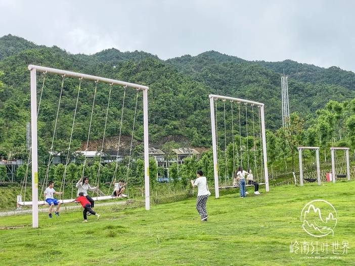 魔法森林里可以荡秋千、跳蹦床、滑超长滑梯、在大草坪上自由的奔跑,还有电影《霍比特人》同款小屋,晴天下的阳光洒落 在霍比特小屋,周围被郁郁葱葱的草坡包围着,背靠重重叠叠青云山脉,还原了《霍比特人》 的场景,随手就能拍出童话感的美照