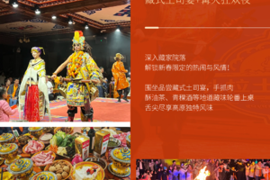 前往藏家院落体验【藏式土司宴】,院落内点燃篝火,悬挂经幡和春节灯笼。用餐前参与藏家春节仪式“敬神祈福”,由藏家阿佳带领朗诵祈福词。菜品设置兼顾老人小孩口味(酥油茶分甜咸两种,手抓肉炖至软烂,提供儿童免辣套餐)。用餐中穿插藏家歌舞表演,导游组织“家庭对歌”游戏,获胜家庭获赠藏式小唐卡。餐后参与篝火打跳,藏家同胞手把手教学,老人可一旁观赏,小孩有专人陪同玩耍,全程充满新春欢乐氛围。