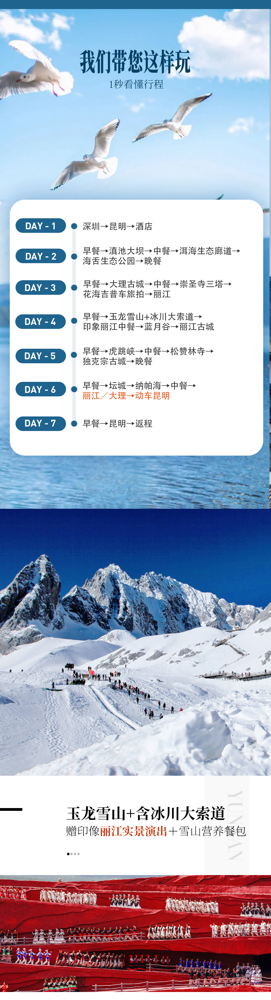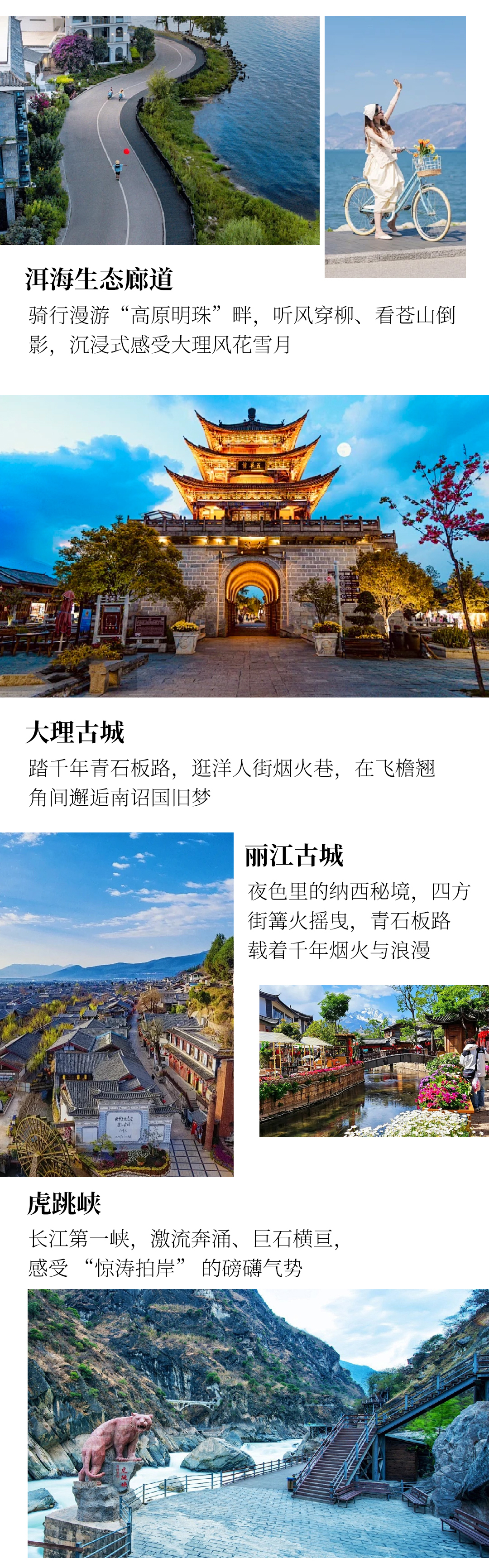 小孩价格:含出发地-昆明往返经济舱机票、丽江/大理-昆明动车二等座