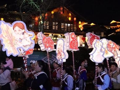在丽江非遗工坊参与【亲子东巴纸手工制作或灯笼DIY】,专业老师指导制作春节主题贺卡——用东巴纸拓印玉龙雪山图案,书写东巴文“平安”“喜乐”,家长和孩子可合作完成“家庭祝福卡”。完成后点亮灯笼,随导游加入“古城灯笼祈福巡游”队伍,巡游路线串联古城核心街巷,恰逢古城春节灯光秀开启,灯笼光影与古建筑灯光交相辉映,途中可在红龙井旁的祈福墙悬挂灯笼,为新年祈愿。