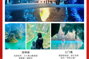 12:30-14:30前往游览【浩坤湖景区】(含游船,游览时间约 2 小时)浩坤湖古称“东湖”,湖光山色处处 成美景 ,古代多少文人墨客畅游浩坤湖, 留下“浩坤湖水碧连天 ,倒影青峰花竹烟。一叶扁舟君自去 ,桃花源里觅 陶潜”的千古佳句, 明代土司岑云汉在汾洲钓鱼台附近的石壁上雕刻的《游东湖记》 ,得到流传。 浩坤湖一年四季 绿莹莹 ,深不见底 ,湖中几个小岛像竖起的吊坠一样镶嵌在一颗硕大的绿宝石里。湖边上的山峰层峦叠嶂 ,气势雄 伟地袝托着明如境的湖面 ,浑然天成 ,如同走进了梦幻般的仙境。