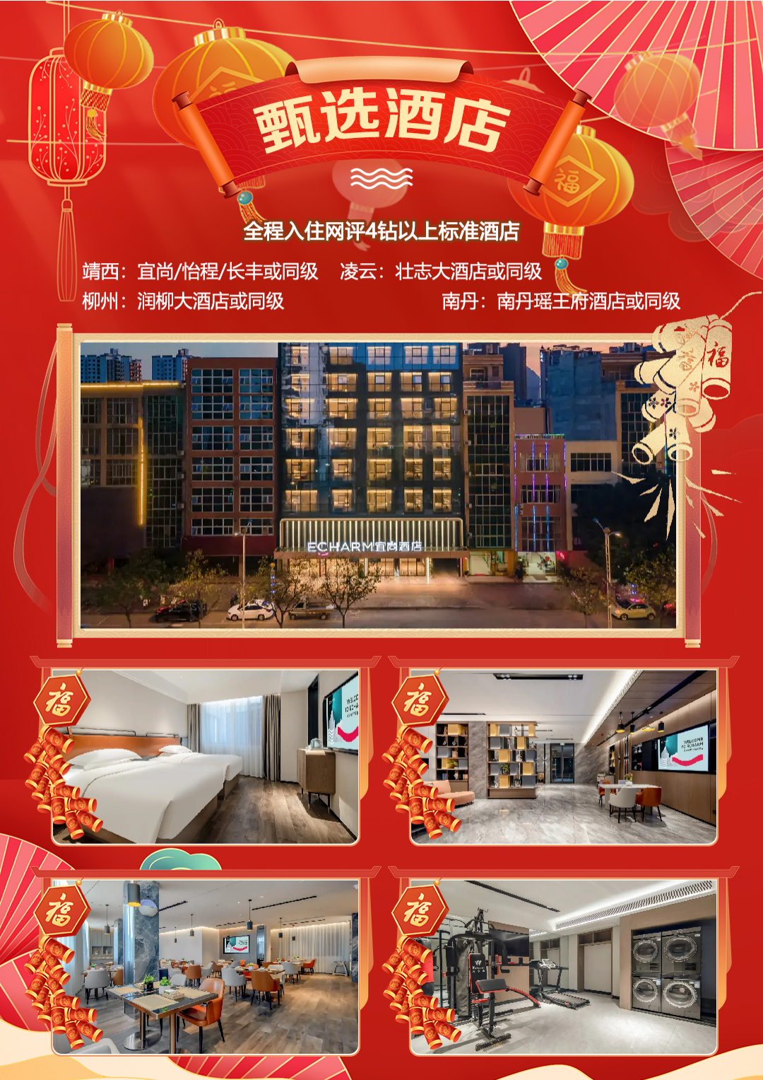 靖西:长丰、华西大酒店、环球大酒店、宜尚、怡程或同级