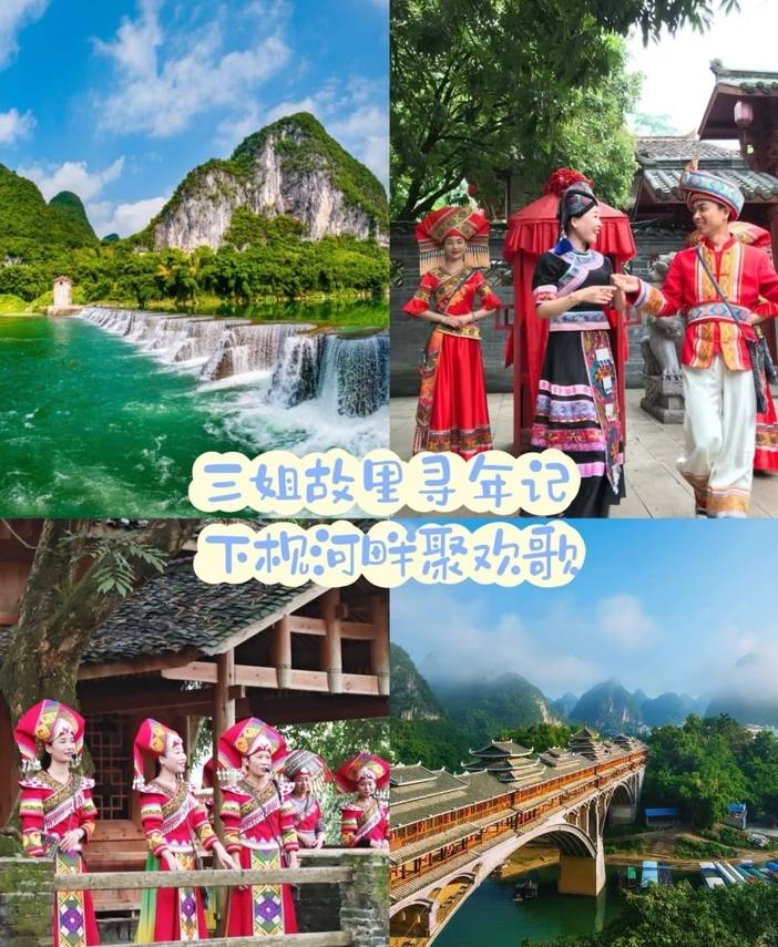 08:00-10:00前往游览【刘三姐故里】(首道门票+游船已含 游览时间约 1 小时)。景区为国家AAAA级景区,位于广西壮族自治区河池市宜州区冯京路冯京公园刘三姐故里景区,门景区距市中心7公里,整个景区由贯通市区的龙江河段与刘三姐乡的下枧河段交汇构成,形成"天人合一"天下奇观,全程25公里。 景区自从1992年开放以来,得益于电影《刘三姐》的影响力,深受游客喜爱。在这里可以领略到广西壮族对歌文化,探访壮寨民俗风情。