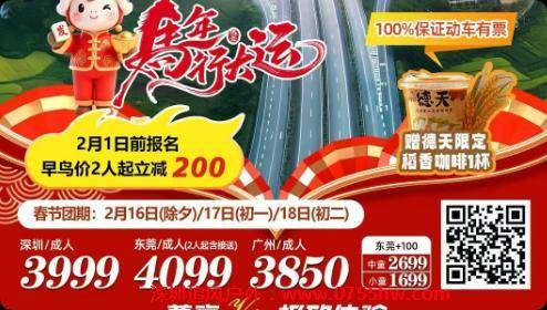用车:满30人升级2+1豪华旅游大巴,司机五年以上驾驶经验,每人一正座