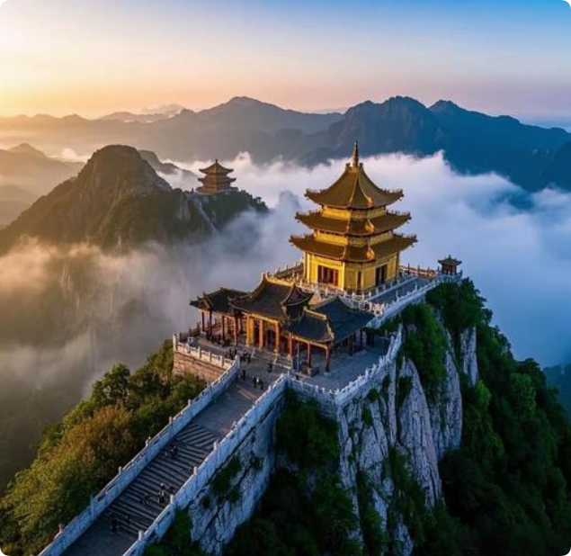 中餐后游览【十里画屏】世界规模最大的花岗岩滑脱峰林地貌,十里长的栈道一挪一景,处处是画。 【金顶道观群】:走完十里画屏就到达金碧辉煌,大气磅礴的金顶,这里主要参拜、祈福的殿 堂。祈求官运、福禄、姻缘都可以。
