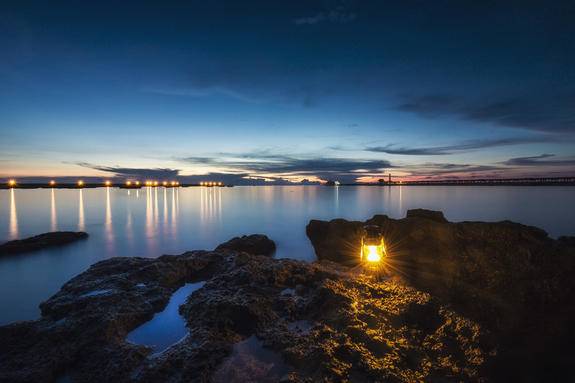 温馨提示:晚上要去海边的一定要结伴,而且晚上绝对不能下海游泳。
