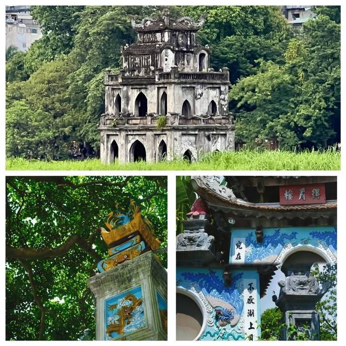 河内镇国寺(Chua Tran Quoc)位于西湖金鱼岛上。它始建于 6 世纪,占地 1200 平方公尺,历史上与皇家多有渊源,李朝时代太后曾在此参加法会、听闻佛法,还出过几任国师,已被列为历史文化遗产。