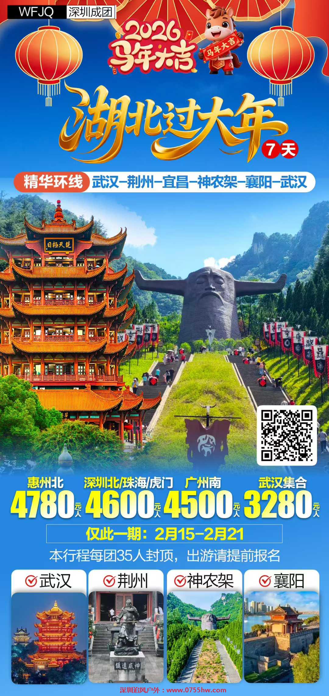 2026马年新春,鄂楚大地山水披红、文脉撞福!7天串联武汉、宜昌、神农架、襄阳,解锁「龙马精神」新春打开方式——逛古城、游江峡、探秘境,在非遗集市尝年味,在祈福法会迎好运,让春节既有山水壮阔,更有团圆温度!