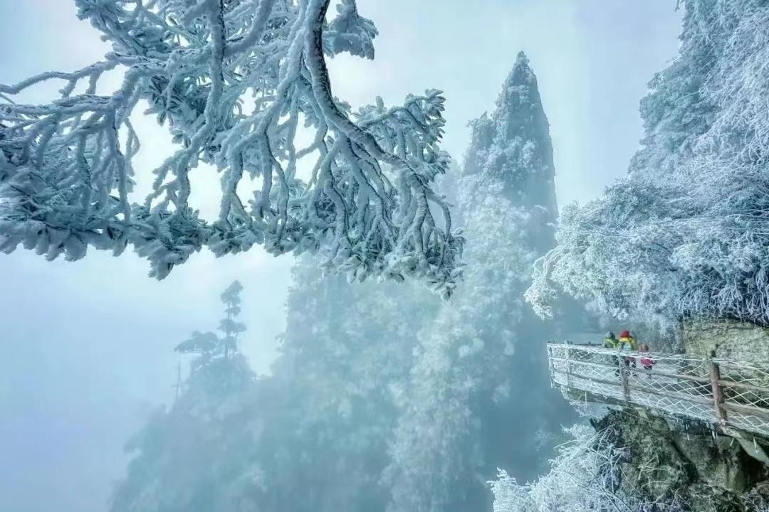 10:30 深度游览五指峰景区,漫步悬空栈道,南中国最长的悬空栈道;总长约8公里,海拔1400米至1600米,两层栈道,全程无障碍观光环线,登高山、临绝壁如履平地,尽享“非人”奇遇。