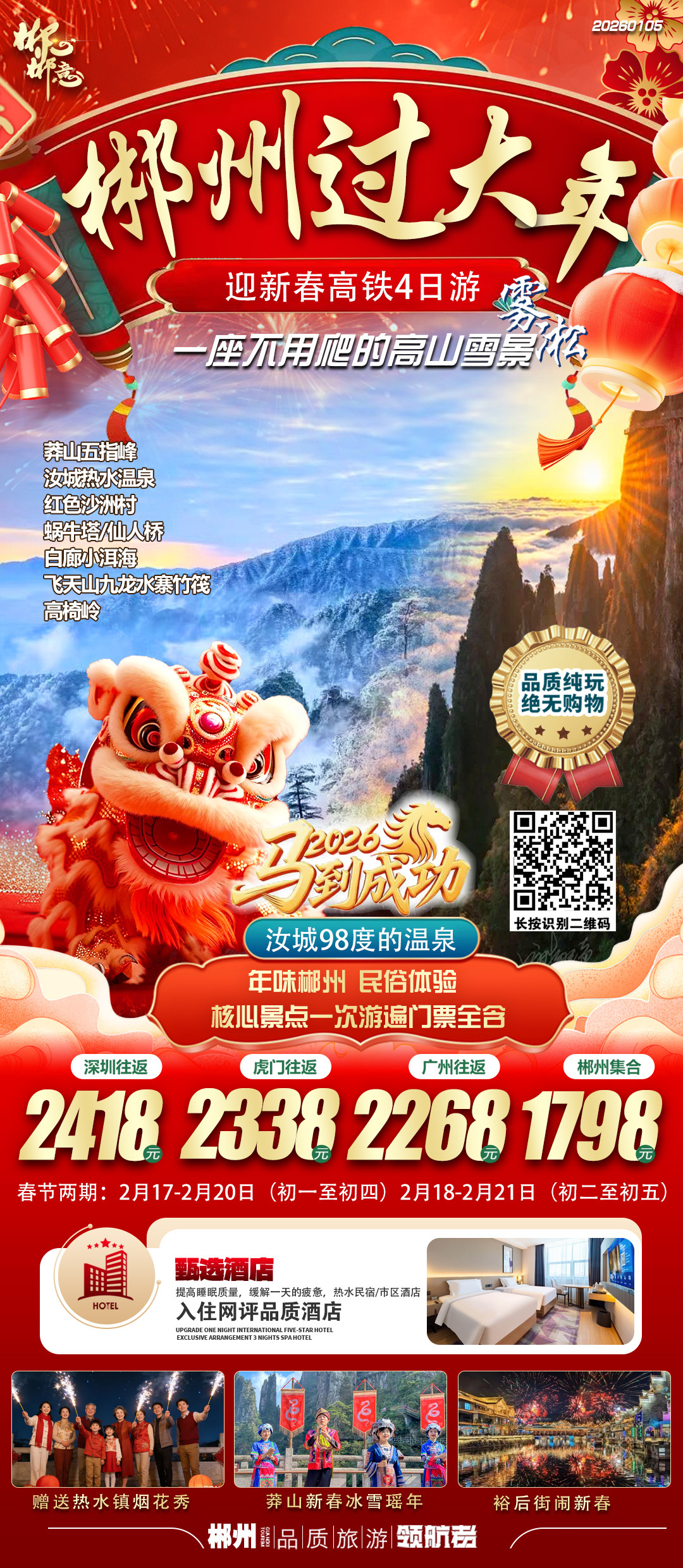 根据各自购买的高铁票或火车票抵达郴州,热情的司导提前在车站等候大家接站。(新春接站幸运红包等你来挑战!)